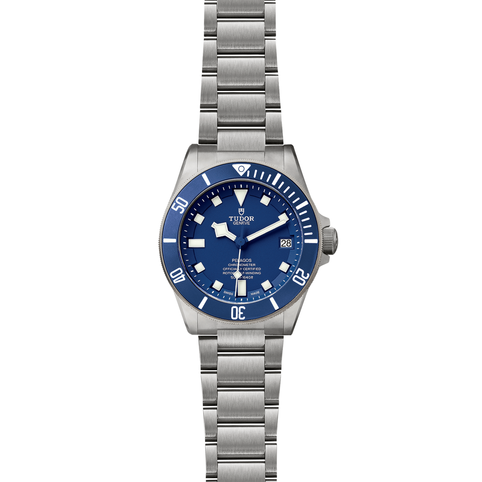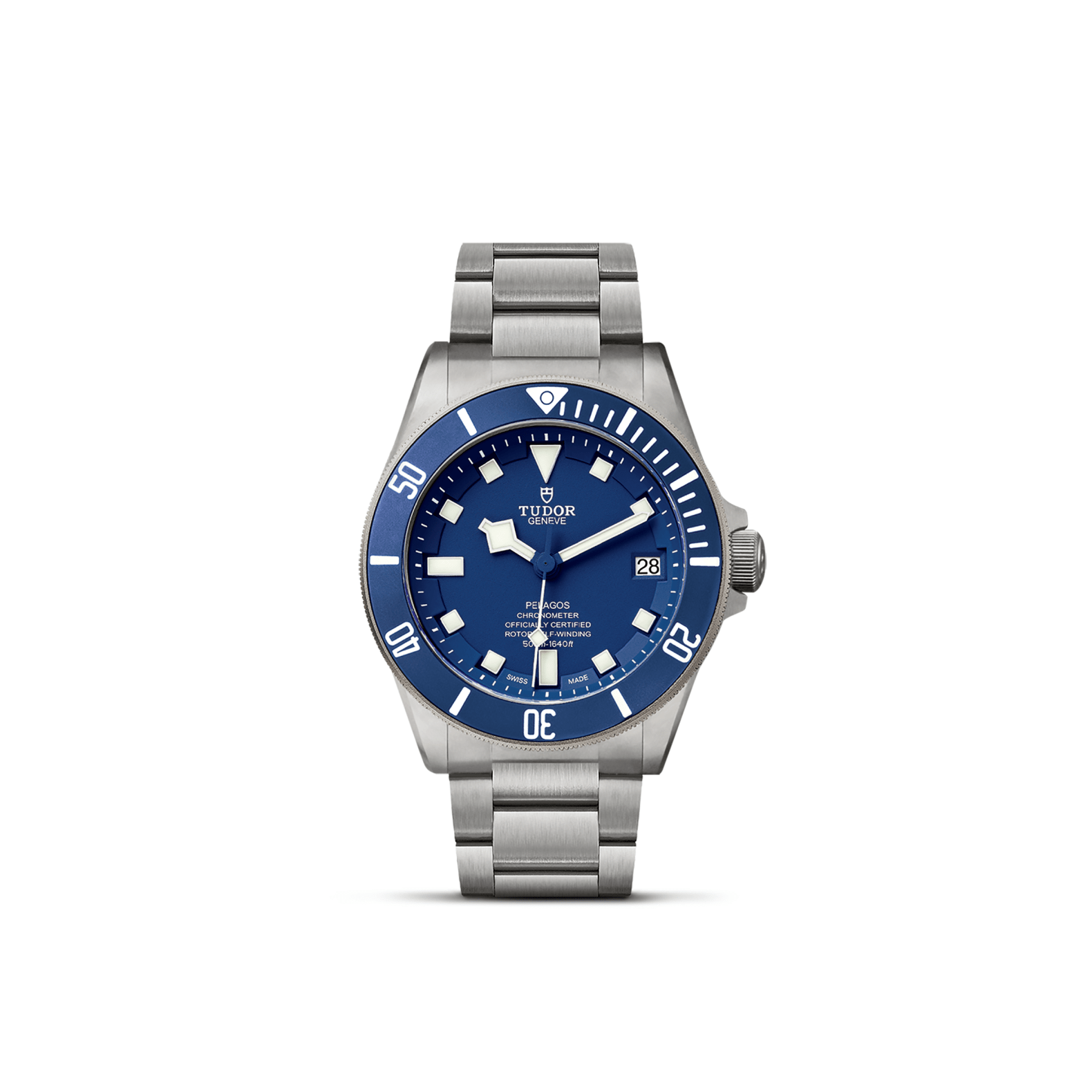 Titanium winding crown with TUDOR logo in relief Helium escape valve at 9 o’clock