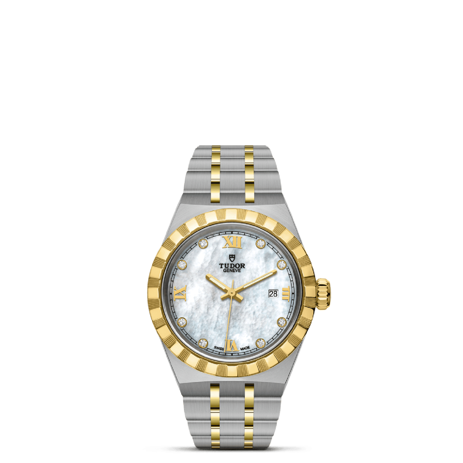 Notched bezel in yellow gold, alternating cut grooves and polished finish