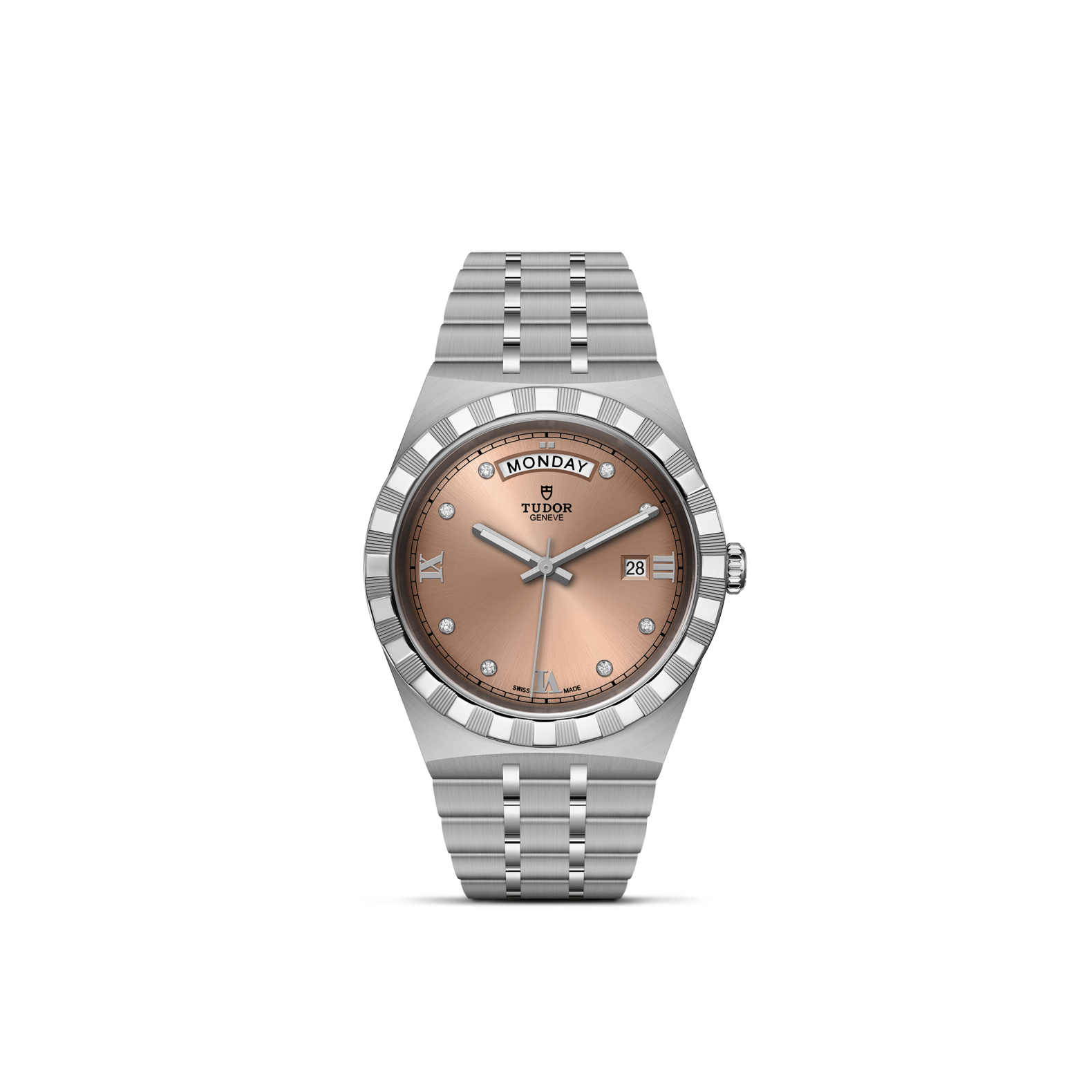 Integrated bracelet in steel, 5 rows, satin-brushed external and central links, polished intermediate links, with folding clasp and safety catch