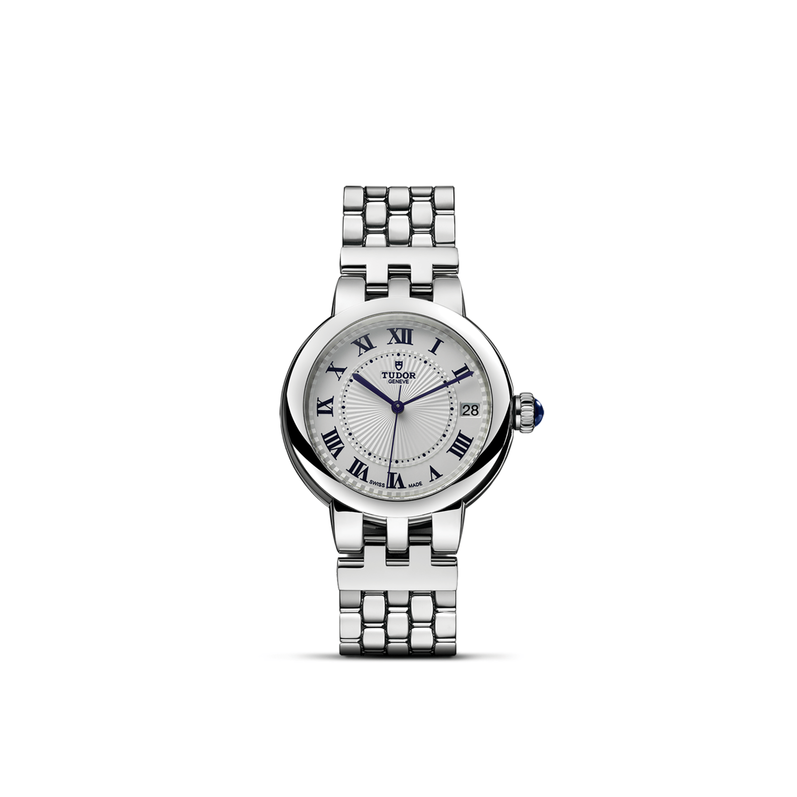 Steel screw-down winding crown, with transparent blue spinel cabochon