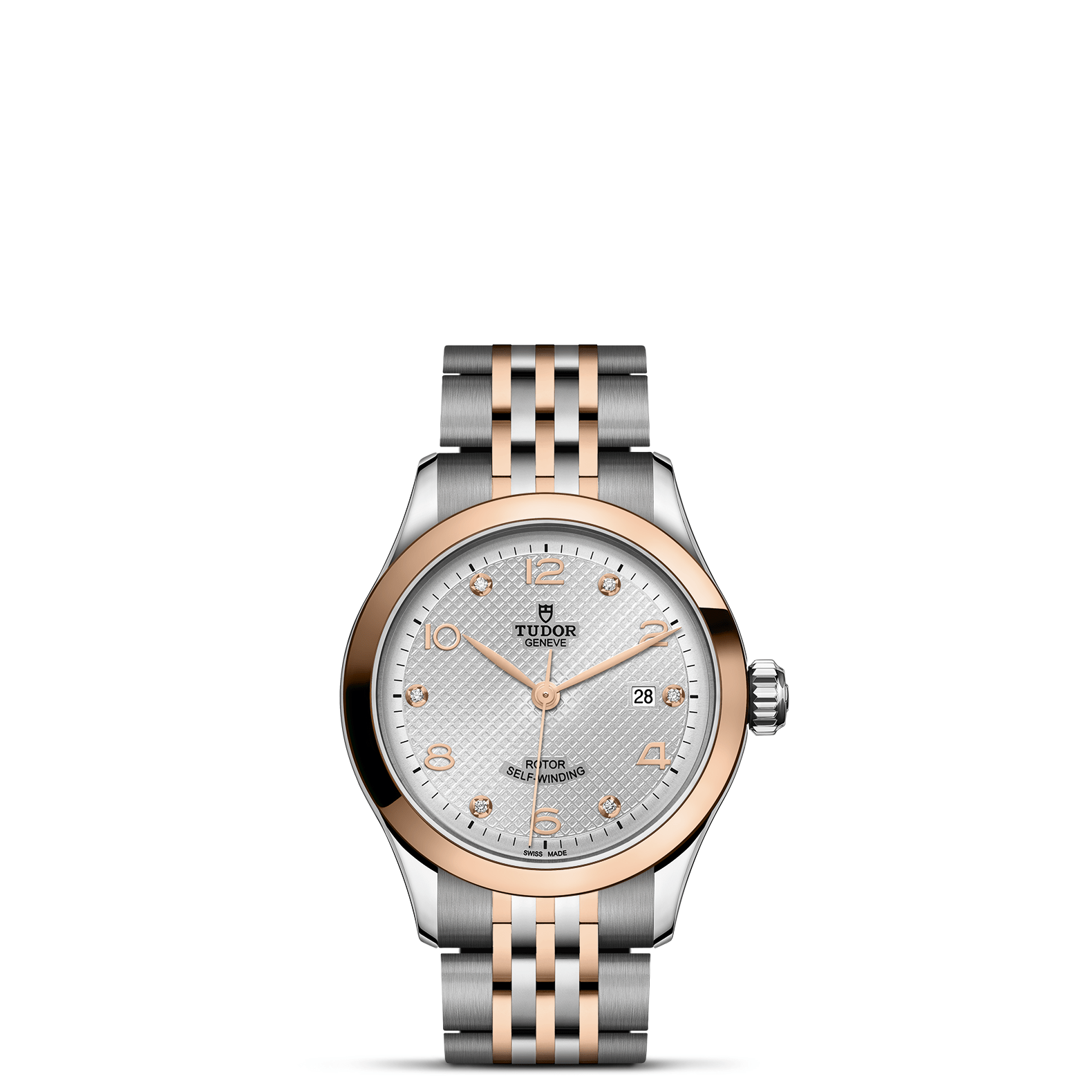 First center links in steel or solid rose-gold. Remaining center links in steel or steel covered by a 0.2mm rose gold cap