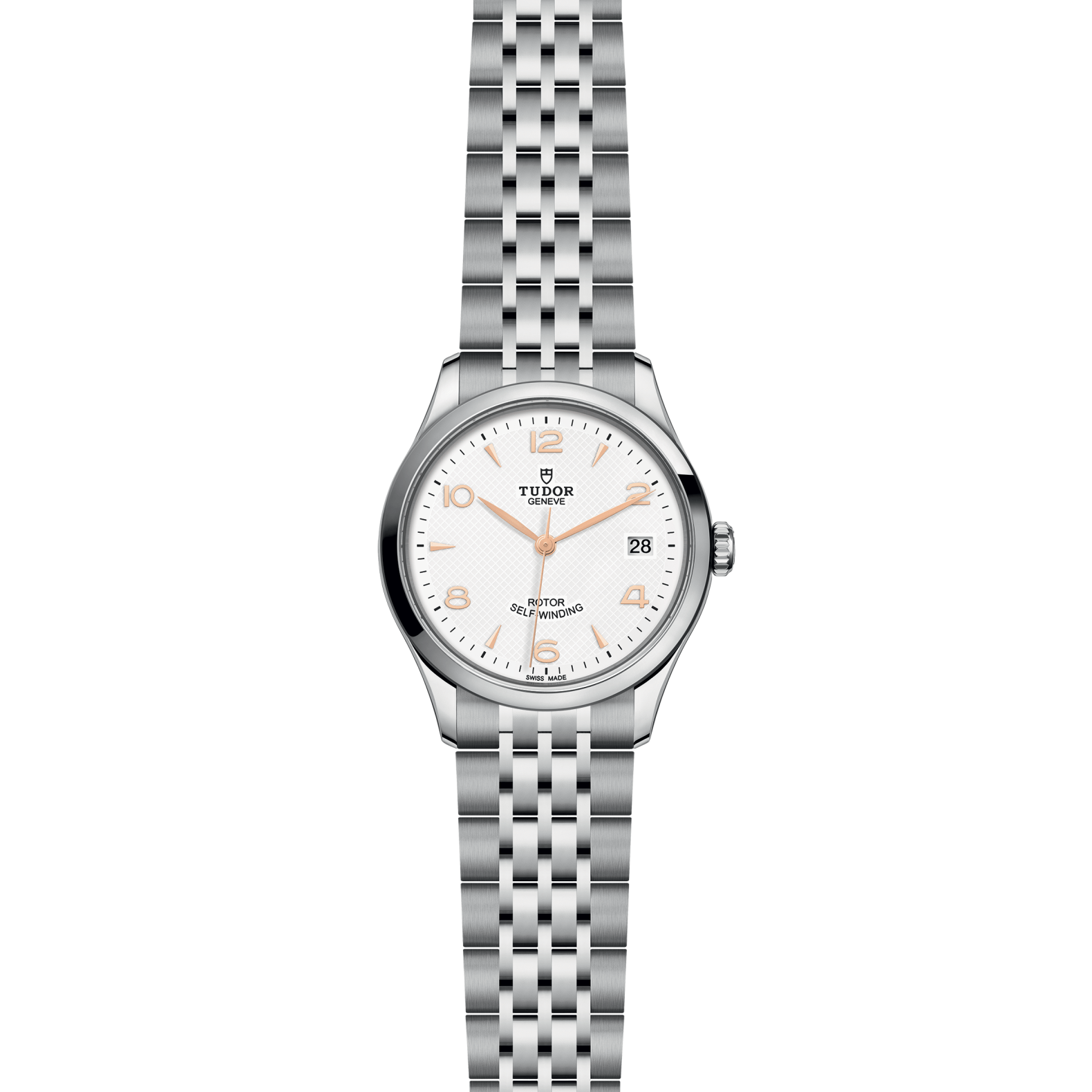 Steel bracelet, 7 rows, satin-brushed external links, polished centre links, with folding clasp and safety catch