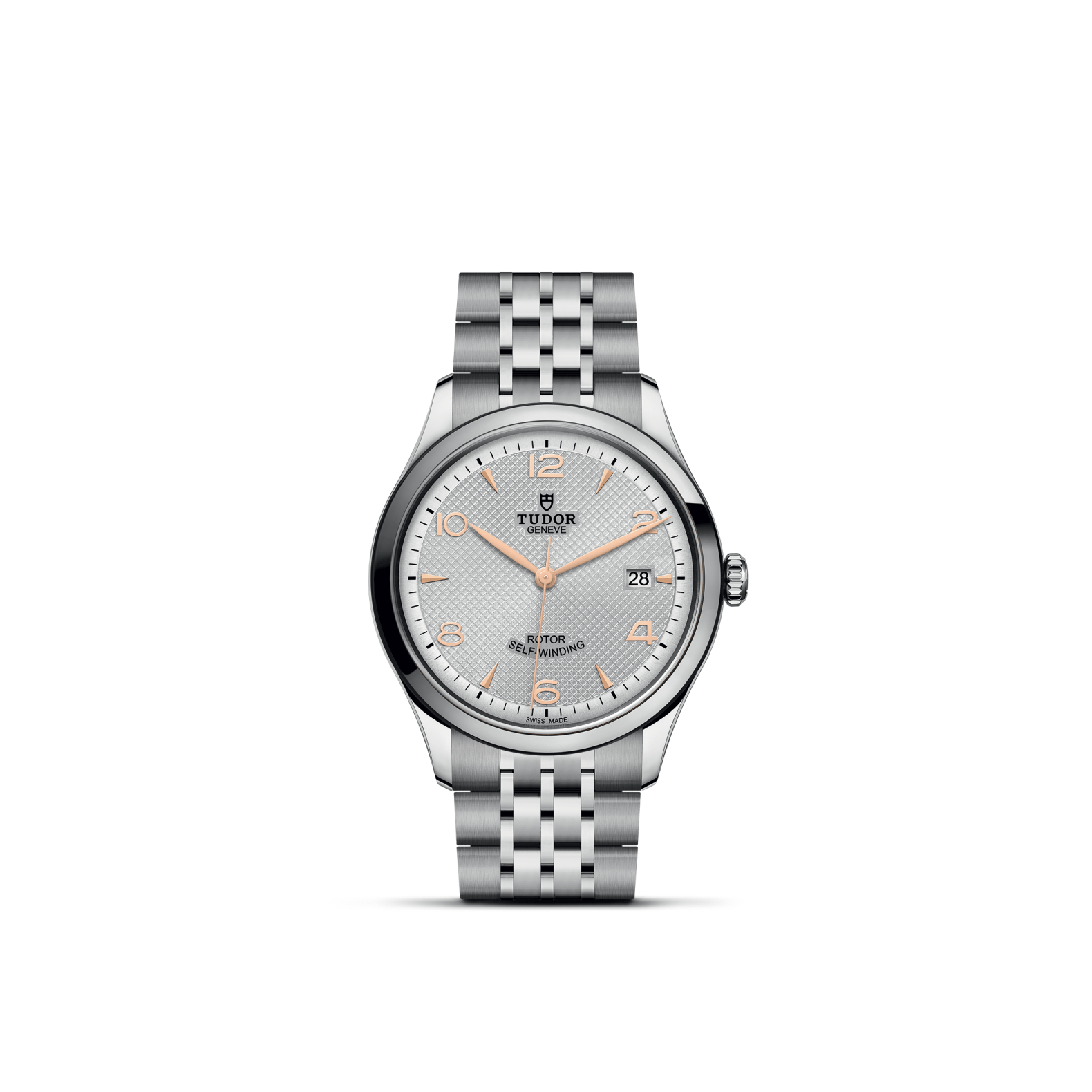 Steel bracelet, 7 rows, satin-brushed external links, polished centre links, with folding clasp and safety catch