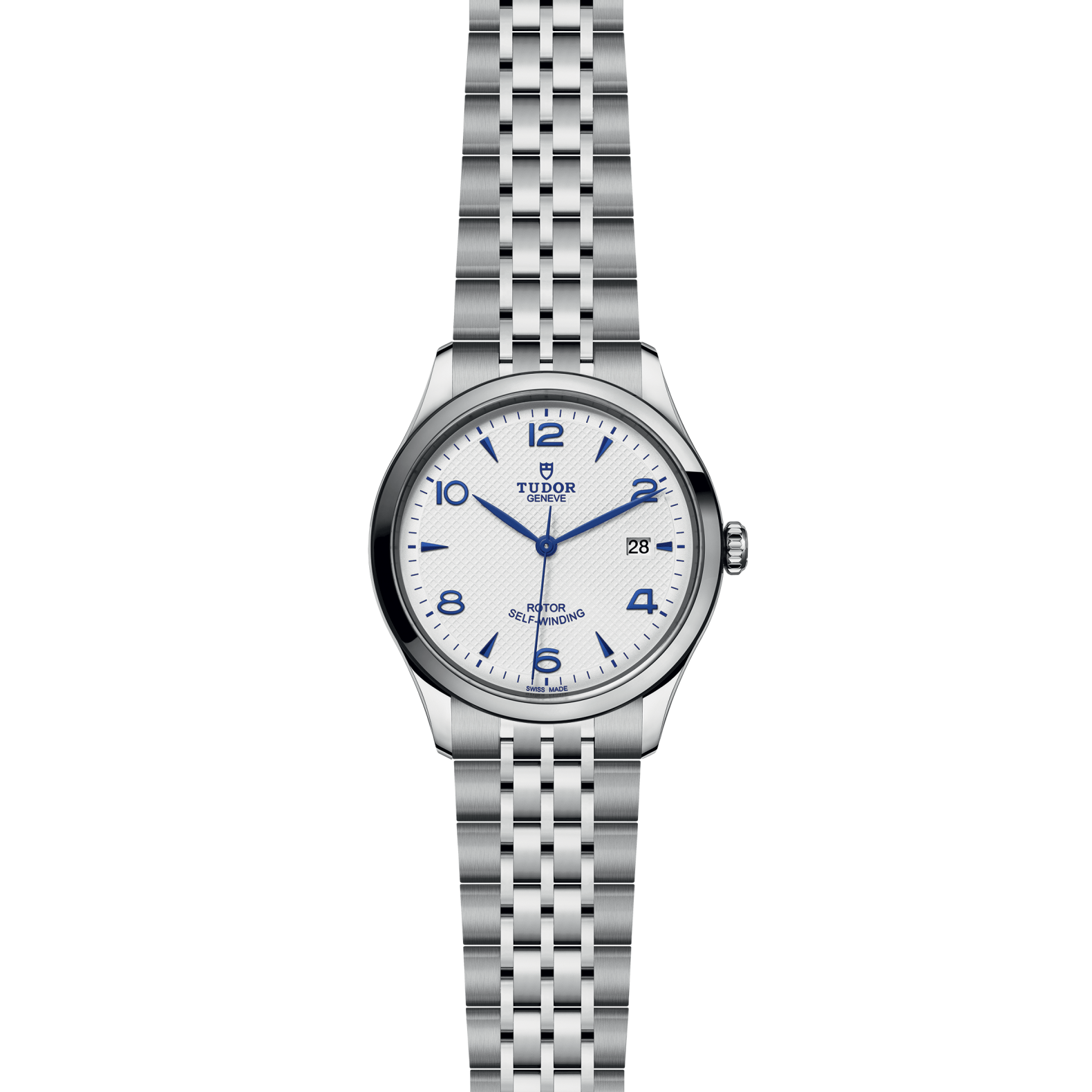 39mm steel case, Opaline and blue dial