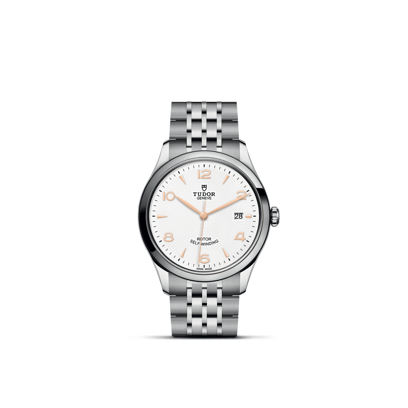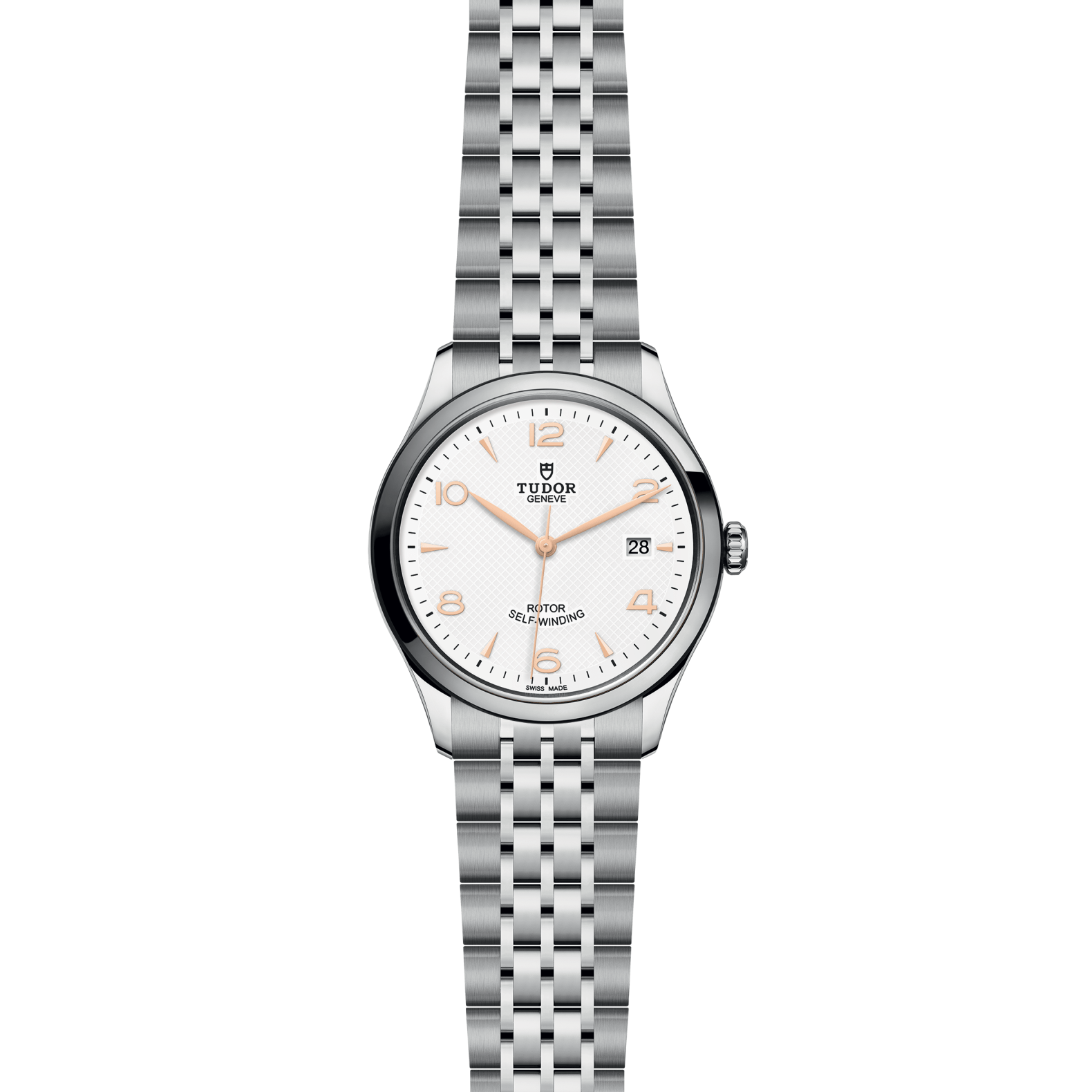Steel bracelet, 7 rows, satin-brushed external links, polished centre links, with folding clasp and safety catch