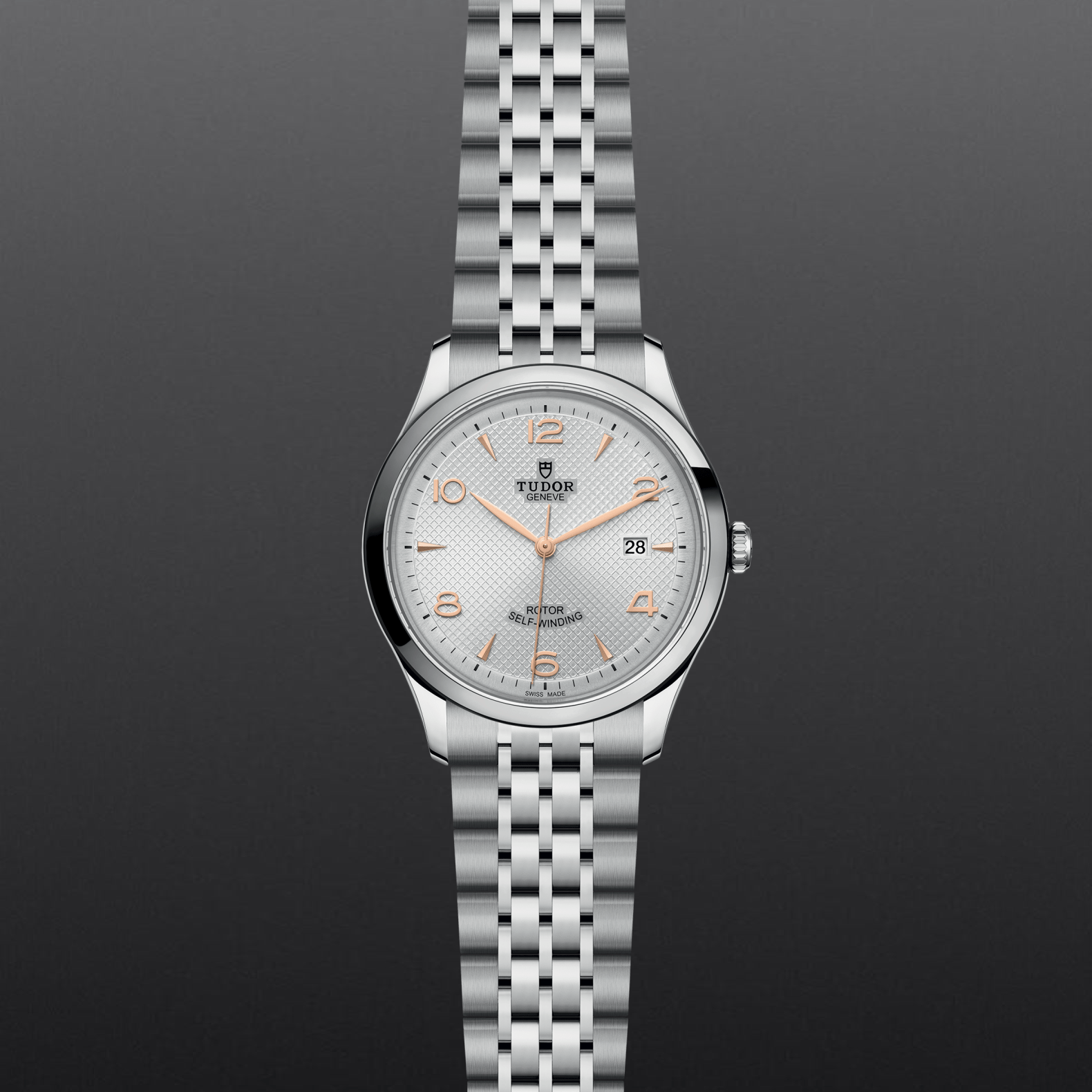 Steel bracelet, 7 rows, satin-brushed external links, polished centre links, with folding clasp and safety catch