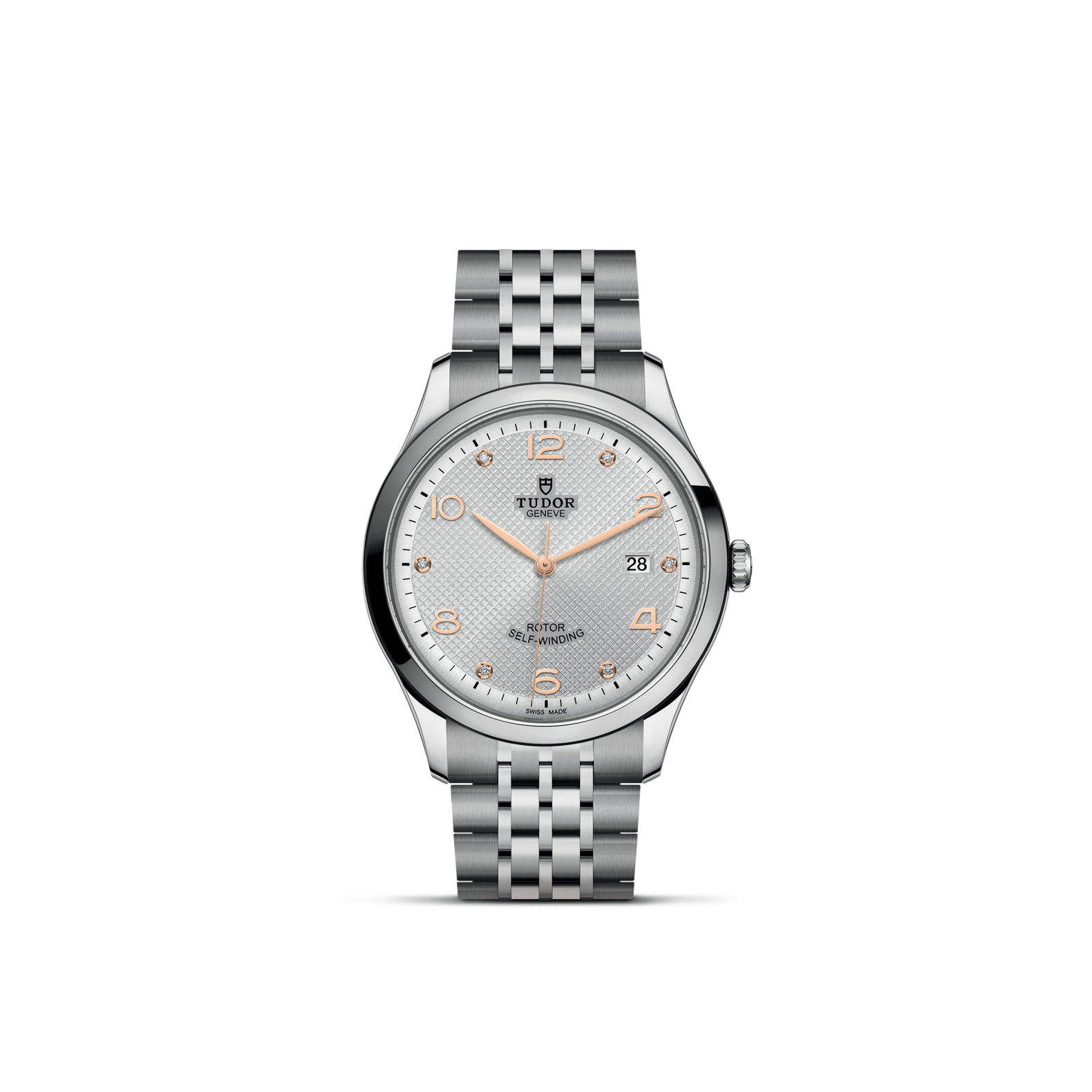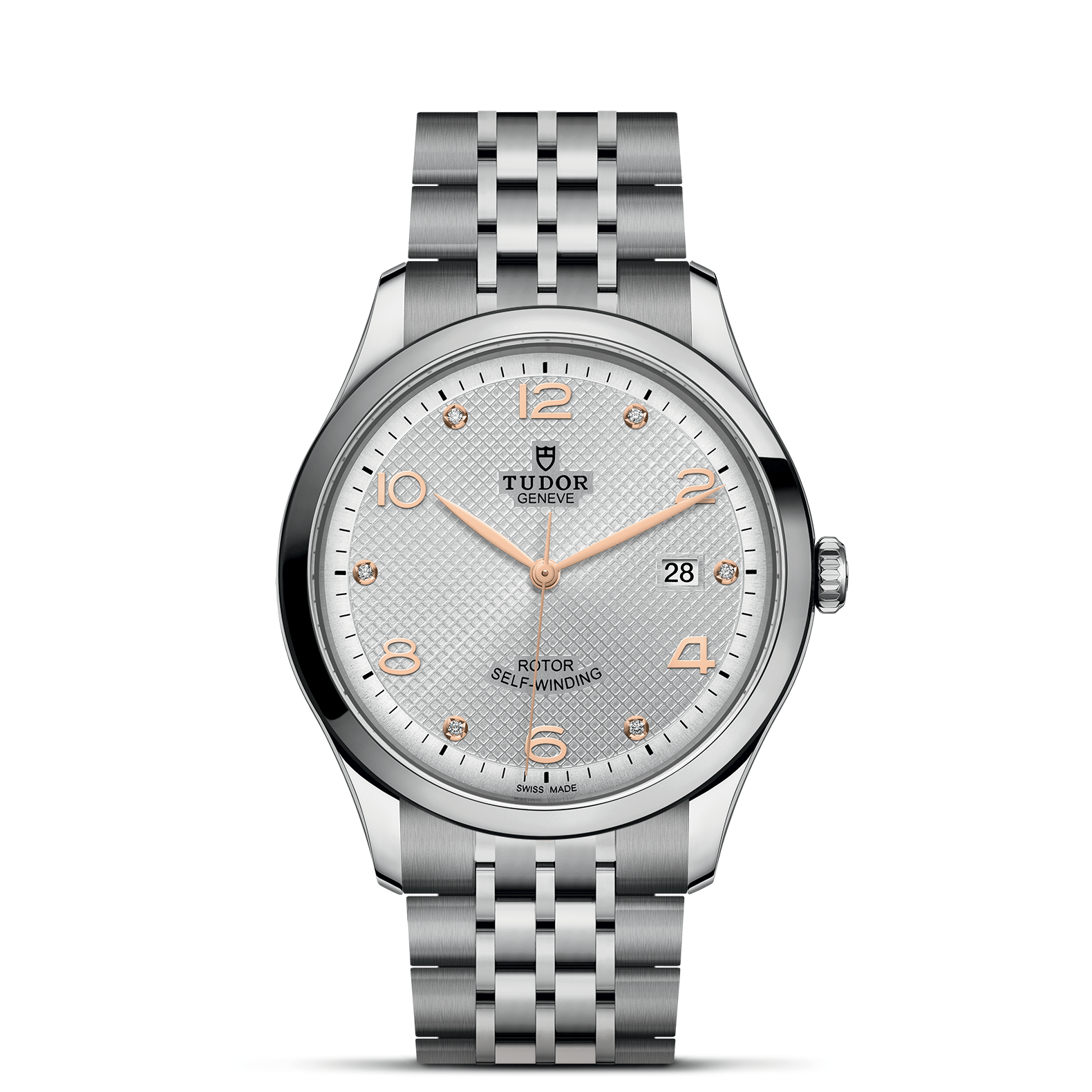 Steel bracelet, 7 rows, satin-brushed external links, polished centre links, with folding clasp and safety catch