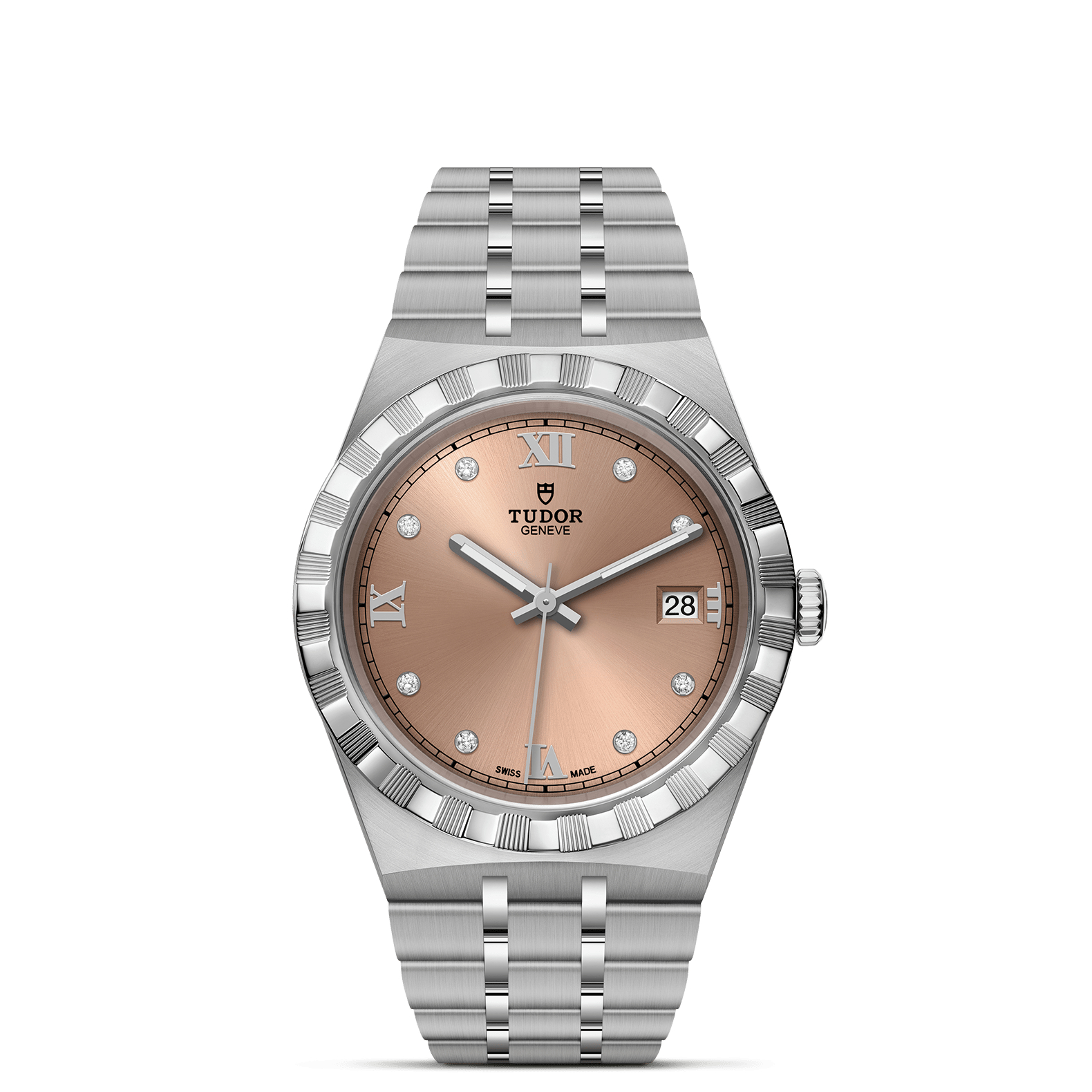 Integrated bracelet in steel, 5 rows, satin-brushed external and central links, polished intermediate links, with folding clasp and safety catch